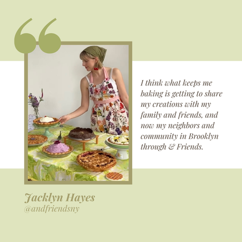 Jacklyn Hayes, a baker and yogi, founded & Friends to create a sense of community through shared activities. Initially offering yoga classes in the park, the venture expanded to include Jacklyn’s love for pie baking. Now, & Friends offers a variety of beautifully crafted pies and organizes community events and pie pop-ups in New York City.